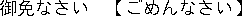 En Japonés, practicamente todo se construye con partículas: definen cual es el sujeto, el objeto, etc... conjugan los verbos, construyen las frases interrogativas (partícula "-ka" al final de la frase, sería el equivalente al "?"), y así para todo. En la próxima lección se explicarán las diversas partículas existentes y el significado de cada una. Entretanto, solo añadiré que las partículas siempre se colocan al final de la palabra, a diferencia del Español, en el que a veces se colocan al principio (prefijos) y a veces al final (sufijos). Expresiones que es imprescindible conocer.En lecciones posteriores entraremos en el vocabulario propiamente dicho, indicando lo que significan las palabras. La siguiente lista de frases es interesante aprendersela, aunque sea "como un loro", ya que son expresiones practicamente imprescindibles en cualquier lugar e idioma.Notas: - Recuerda que en la pronunciación, en el diptongo "ou", la "u" casi no suena. Por ejemplo, en "sou desu" se pronuncia "so desu"; "doumo arigatou" se pronuncia "domo arigato", y así con todas. - Si solo hay una secuencia de carácteres por frase o palabra, es Hiragana. Si hay dos, la primera incluye Kanji, y la segunda (entre paréntesis) es la pronunciación en Hiragana. si -- hai   no -- iie   está bien; de acuerdo -- sou desu   por favor -- douzo   gracias -- arigatou   muchas gracias -- doumo arigatou gozaimasu   de nada -- douitashimashite   disculpe ("lo siento") -- gomen nasai   disculpe (para comenzar una pregunta) -- sumimasen   buenos días (por la mañana) -- o hayou gozaimasu   buenas tardes -- konbanwa   buen día; hola -- konnichiwa   buenas noches -- o yasumi nasai   adiós -- sayounara   hasta mañana -- jaa mata ashita   entiendo -- wakari mashita   no entiendo -- wakari masen   ¿puede ayudarme? -- onegai shimasu   Lo siguiente son frases más complejas. Solo las escribo en romaji para aprender cómo se dicen: ¿habla usted Español? -- anataha Supeingo wa hanasemasu ka ¿habla usted Inglés? -- anataha Eigo wa hanasemasu ka busco a alguien que hable Español -- Supeingo no dekiru hito wa imasu ka busco a alguien que hable Inglés -- Eigo no dekiru hito wa imasu ka ¿cómo se dice ésto en Japonés? -- kore wa Nihongo de nan to iimasu ka ¿cómo se llama usted? -- anata no namae wa nan to iimasu ka ¿dónde está el servicio? -- toire wa doko desu ka Y ya que hablamos del servicio, si lo buscas, esto:  significa "aseo", "toilet". (el primer ideograma quiere decir "conveniente", el segundo significa "lugar", de lo que se deduce que el cuarto de baño es el "lugar conveniente". Muy cierto). Y para distinguir el de damas y el de caballeros se usan los ideogramas de "mujer" y "hombre": mujer:  hombre:  y es importante memorizarlos para evitar problemas incómodos. Caligrafía Hiragana: Sonidos vocales y N final de palabra.Orientación: Cada trazo comienza en el extremo "grueso" y termina en el acabado en una punta fina. Imagina que está dibujado con un pincel y primero lo "clavas" en el papel y se afina según se hace el trazo.