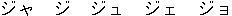 | J | ja(jya) ji ju(jyu) je(jie) jo(jyo) |  |