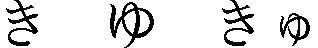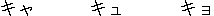 En este caso solo existen los sonidos "KYA", "KYU" y "KYO". Se usa como base el Kana de "KI", y para el